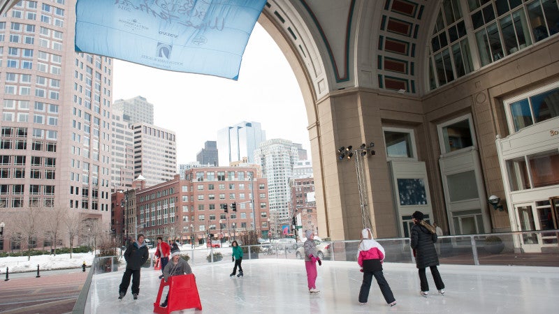 Well, not on the Harbor, but next to it. Last winter, Boston Harbor Hotel opened a small rink underneath its iconic arched dome and invited the city to come skate for free. (Note: skating has ended for the season but will resume in November; also, BHH charges for skate rentals, but if you bring your own, you’re golden!)