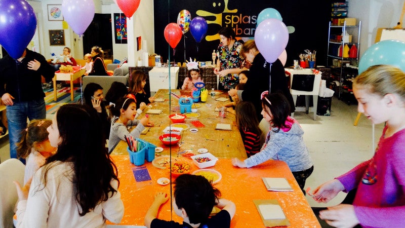 Includes: Two hour use of the SplashLab Studio for up to 15 birthday guests with tableware, basic decorations and use of the PA system. Parents select two activities from project lists, and an instructor will lead activities and supply art materials. Kids will take home their masterpieces and also receive a SplashLab goody bag. Guests will also get access to the Splash Room for some out-of-control and messy fun (without worrying about cleanup!). Add-ons include food and drinks, themed parties and clay activities.