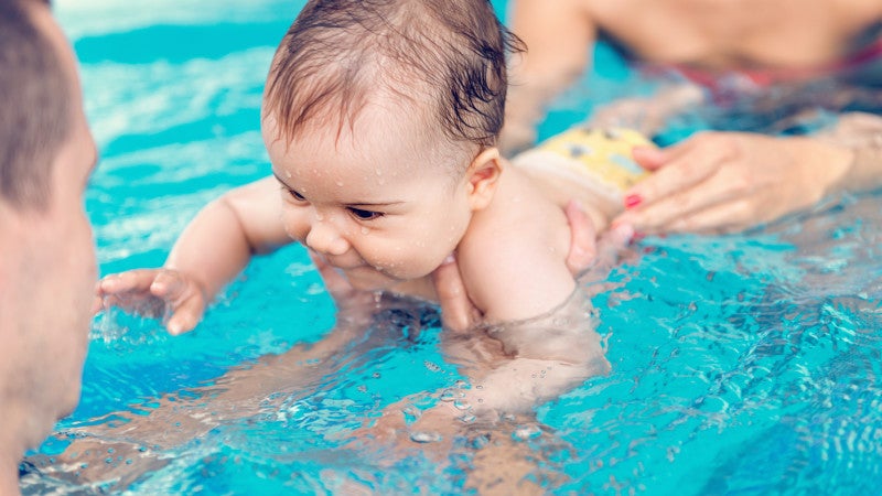 13. Enroll in a tadpole swim class at Aqua Tots. Together with your baby, you’ll focus on water adjustment, safety skills and breath control.