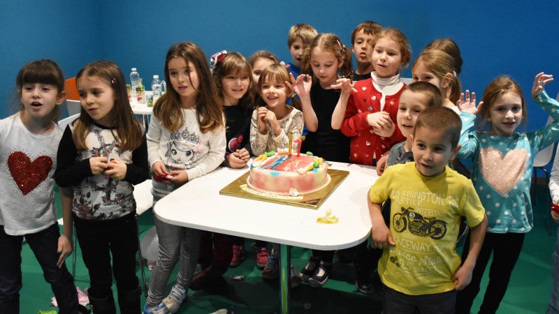 Includes: Basic package includes up to 10 children and an hour and a half in the Imagination Children’s Academy; higher level packages add children, logistics coordinator, paper goods, birthday cake and mini water bottles; other packages include pizza, an interactive performances and extra play time.