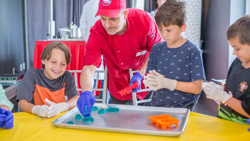 Includes: Hour and a half for candy-making experience, cupcakes, ice cream, lemonade and water, invitations, party room with party host, setup and cleanup, and tableware; add-ons include pizza, fill-your-own candy box, games, story time, cotton candy voucher, ice cream sundaes, yogurt bar and additional party attendants.