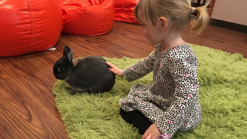 33. Happy Play Cafe—a 3,500 square-foot bird pet store and a rescue shelter center for rabbits—boasts a padded infant room that’s perfect for babes on the move.