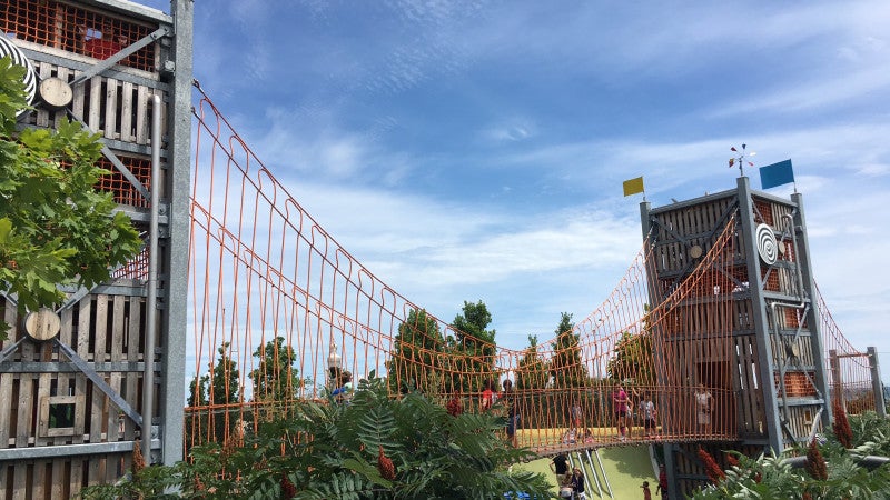 7. Meander through Maggie Daley Park—where grass, slides, and swings and splash pads are ever abundant.