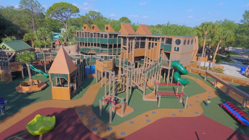 Within this giant 515-acre park (which contains five lakes!) you’ll find a treehouse playground designed for kids between two and 12. The 7,500-square-foot playground has spinners, slides, climbing structures, balance beams, swings and musical instruments. Kids can play under a canopy of oak trees and even walk through a natural cave. It’s the largest playground in Miami Dade County, and with the wakeboarding, mountain biking and farm village, we have a feeling you could easily spend your whole day here.