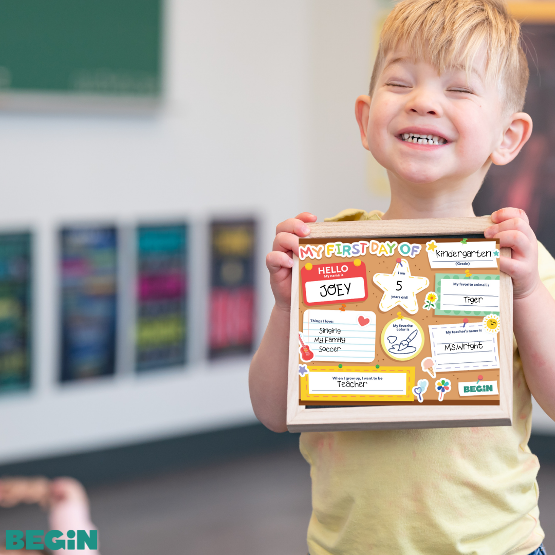 These keepsakes turn the first day of school into a joyful memory-making moment. With a playful sign for snapping photos, a certificate to celebrate the big milestone, and a reflection page to share thoughts and feelings, kids can start the year feeling proud and supported.