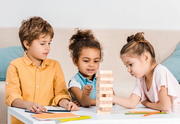 - To vary, use a timer or a die (each kid rolls the die on their turn and places that number of blocks on the tower).