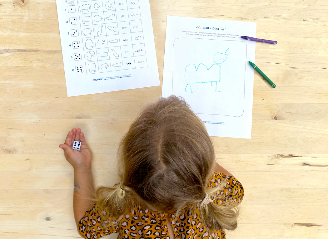 - To challenge your little learner, try some addition while you roll and draw! What’s the sum of the number you roll for your body and tail? Head and eyes?