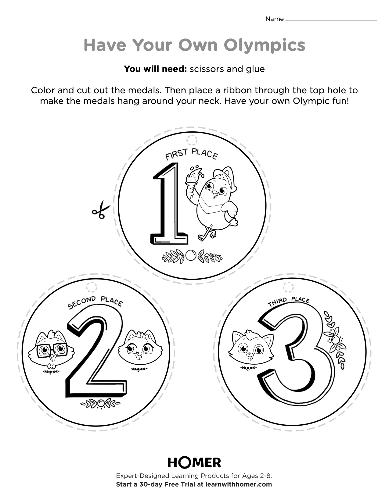 - Cut out the medals (make sure to have an adult do this step if your child isn’t confident with scissors).