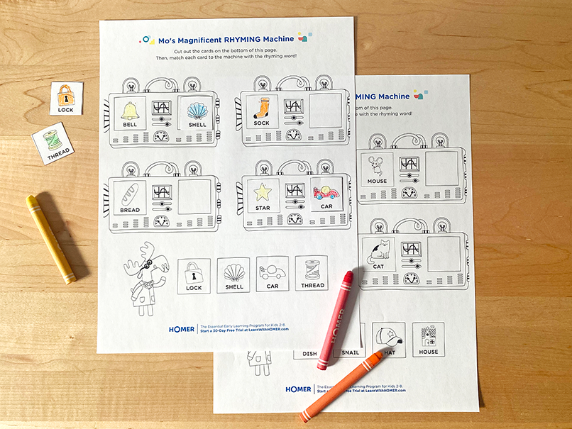 Rhyming is foundational for understanding language and identifying sounds in words. Your learner can practice their rhyming skills with this fun cut and place printable.