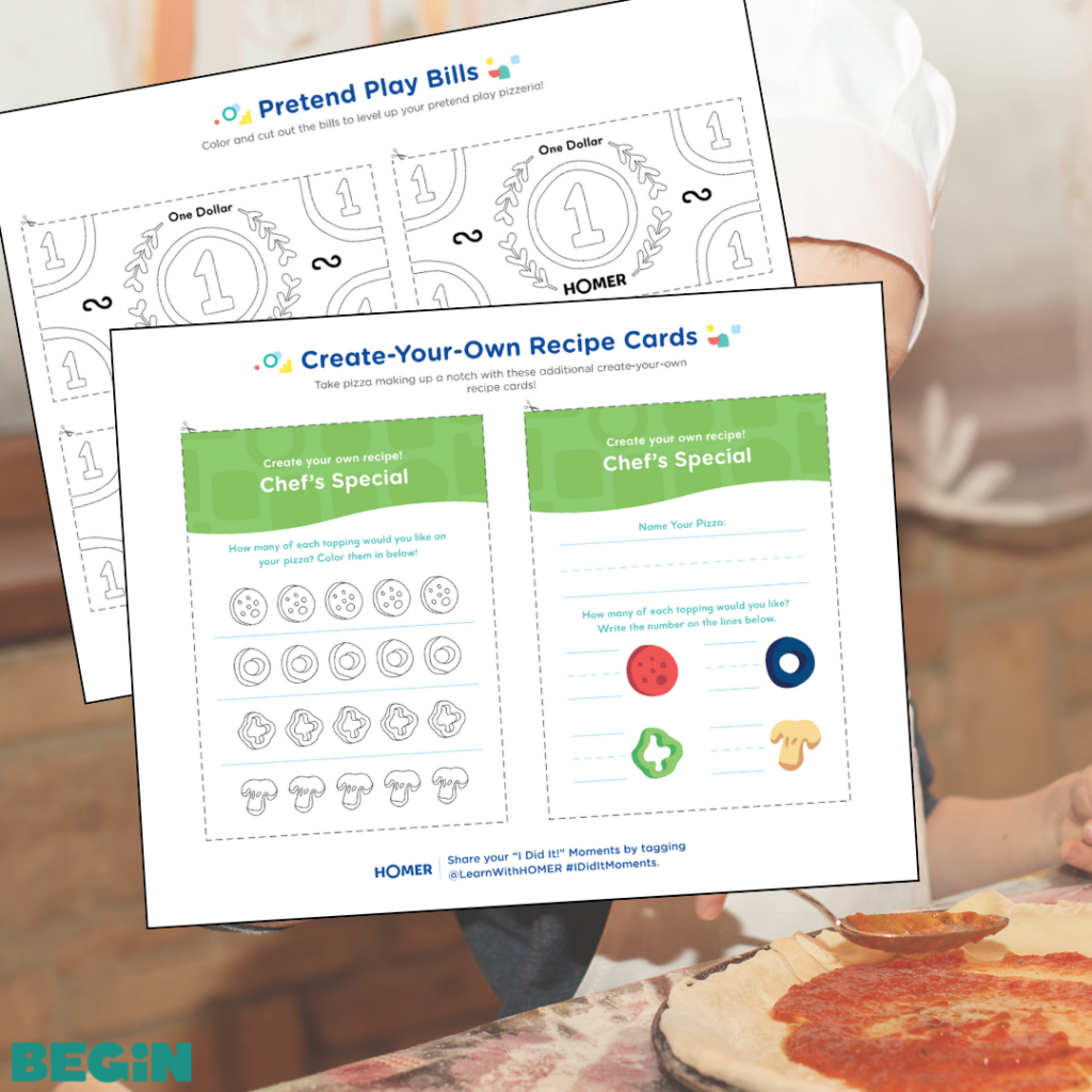 Kids use math and literacy skills while they practice collaboration and communication with this pizzeria pretend play pack