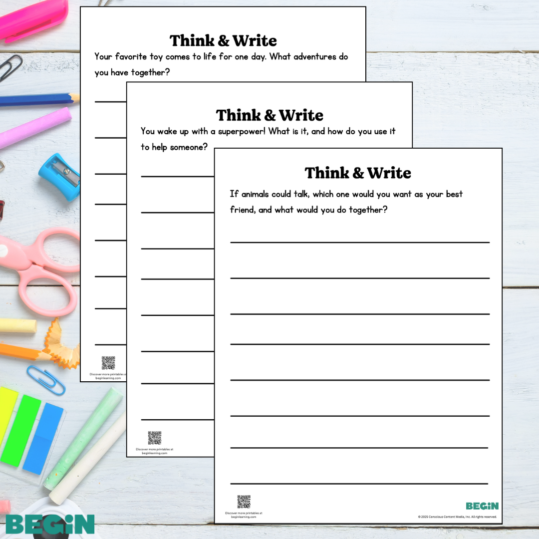 - Print the Think & Write pages and choose a prompt that sparks curiosity.