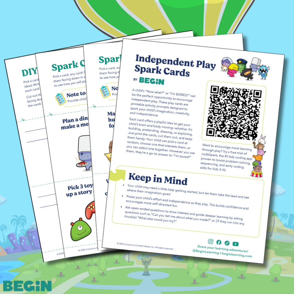 Begin’s activity packs are one way you can help your child work on different skills through play. For instance, our HOMER app includes games and activities to challenge your child in reading, math, social and emotional learning, thinking, and creativity.